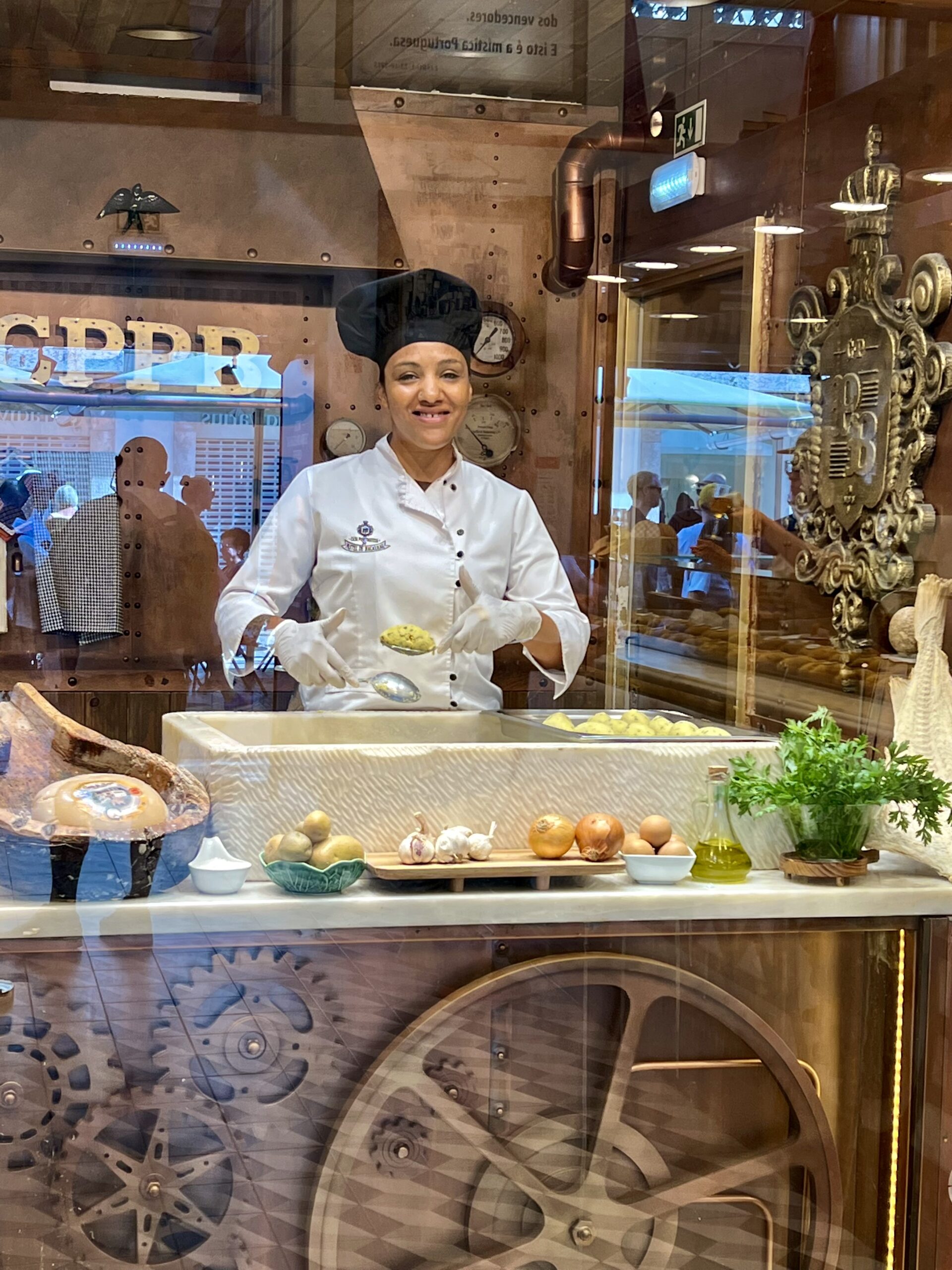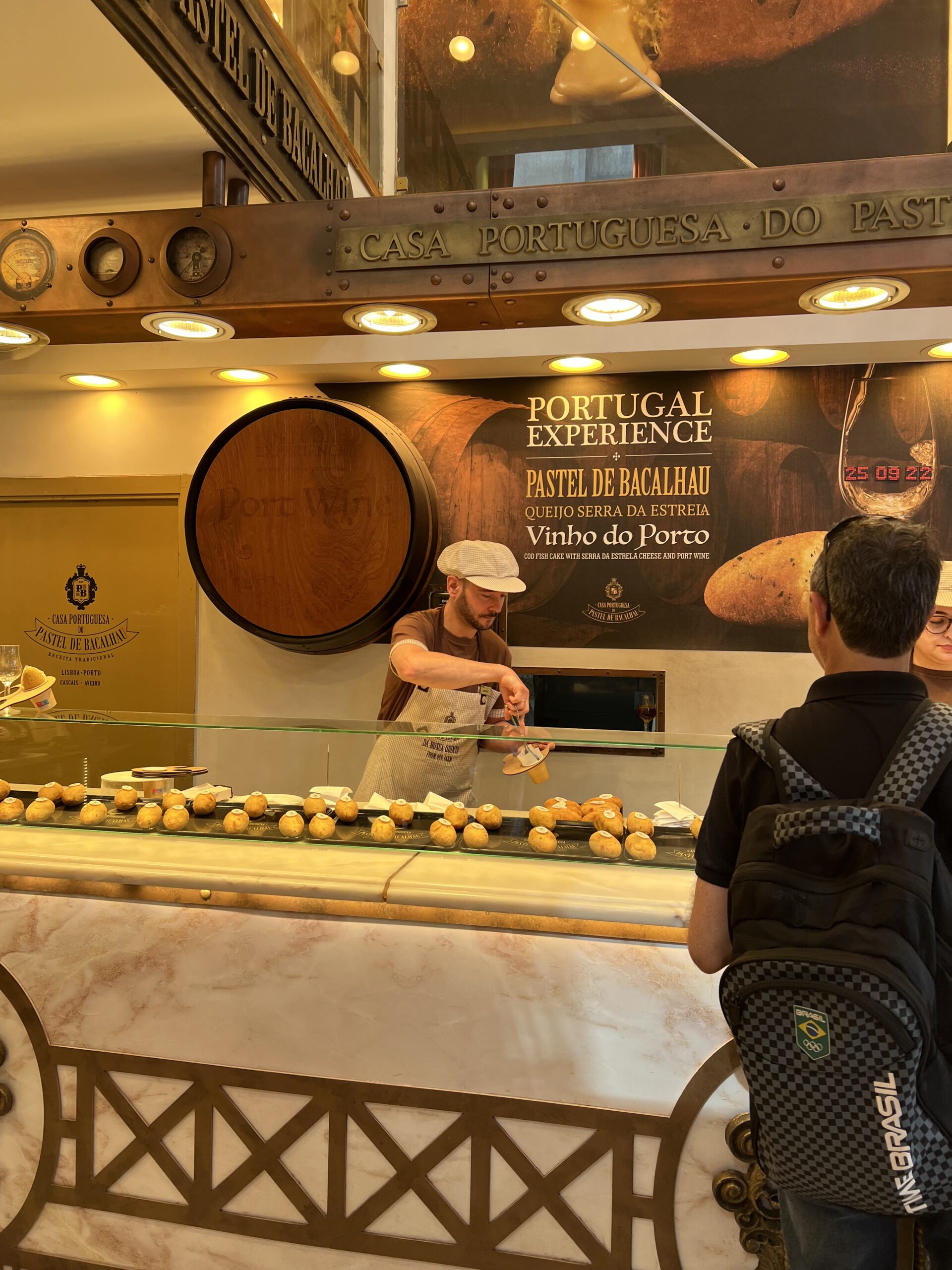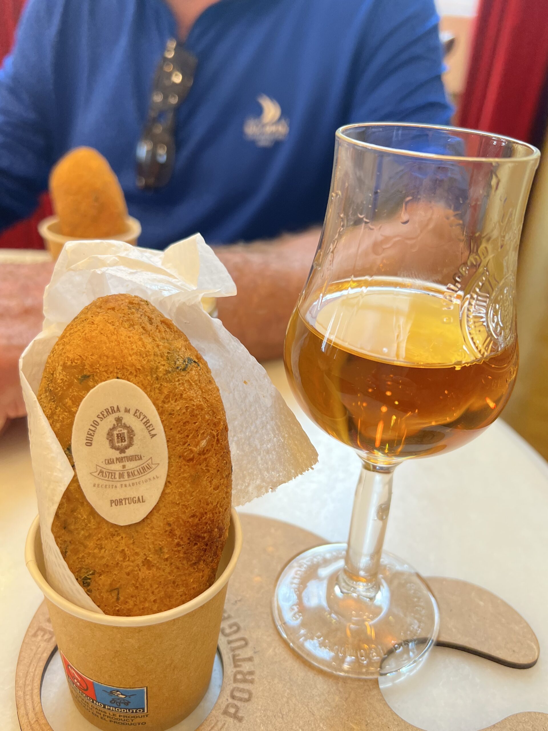 The other noteworthy tourist thing to try is a visit to Casa Portuguesa do Pastel de Bacalhau. This is a beautiful shop offering white port and bacalhau. They present the glass of port and cod cake on what looks like a small artist palette, which is yours to keep. The glass included! You won’t find any local folks partaking. It was fun and the port and cod cake were both really good. They have it set up where you can watch the chefs making the cod cakes and upstairs is set up nice with seating.